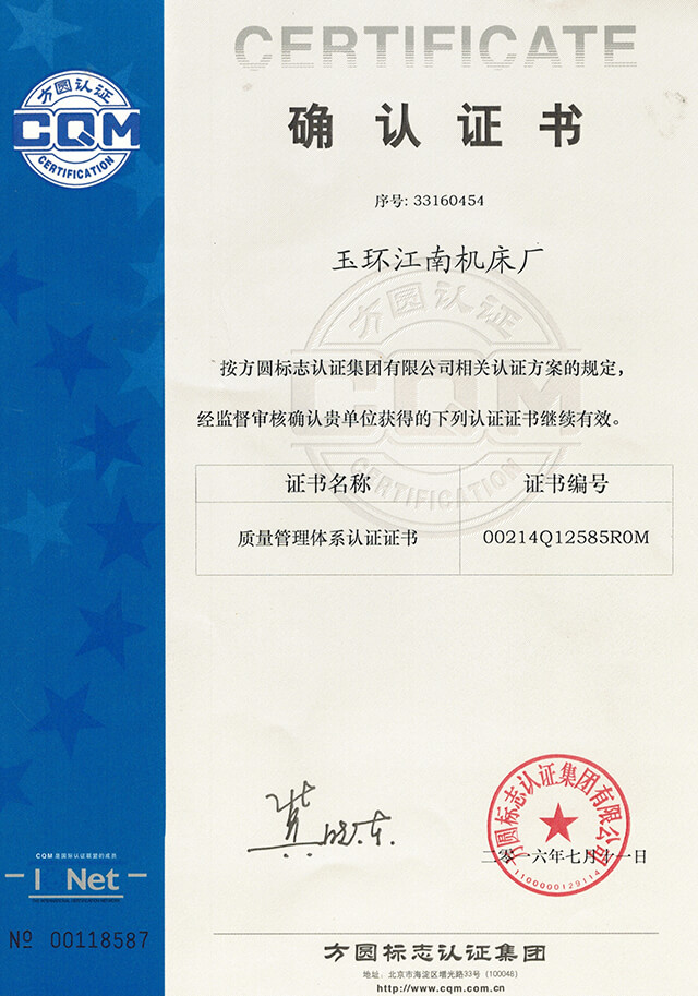 玉環江南機床廠位于浙江省玉環市坎門科技園區,距溫州機場90公里,臺州機場65公里,甬莞高速玉環出口8公里,交通十分便利。企業技術水平先進,具有一套完整的生產體系和檢測手段。企業依靠科學管理,不斷吸取和引進新技術。企業注重品牌形象,不斷開發新產品和提高產品質量來開拓市場。